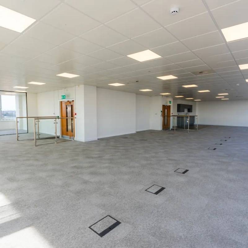 - LED lighting, metal perforated ceiling tiles, comfort cooling and fully raised access floors